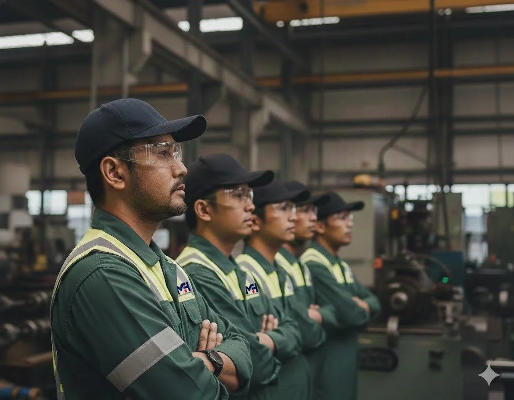 A job advertisement for LPG Bottling Gas Operator and Forklift Driver positions at Merakah Holdings Sdn Bhd, including qualifications, salary, working hours, location, and contact information.